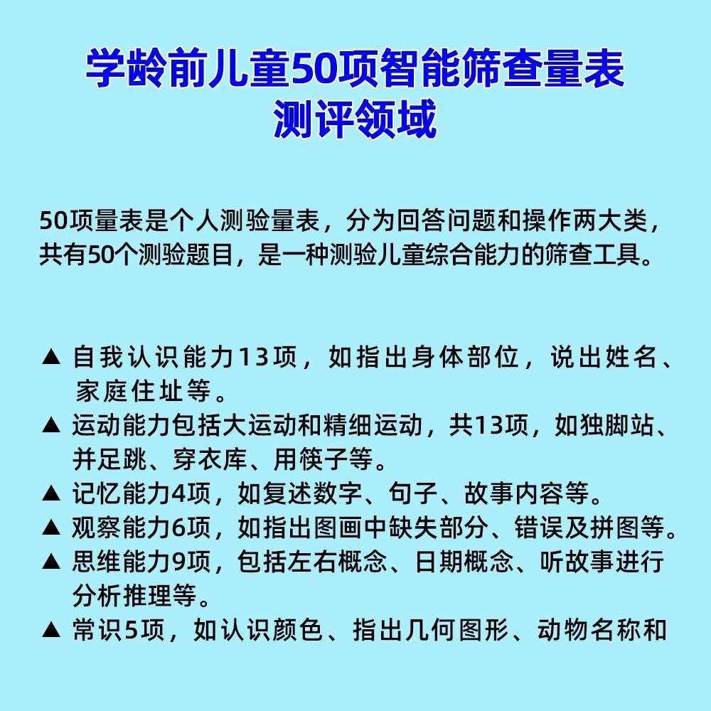 學齡前兒童50項,智能篩查量表工具箱,小兒智力發(fā)育篩查